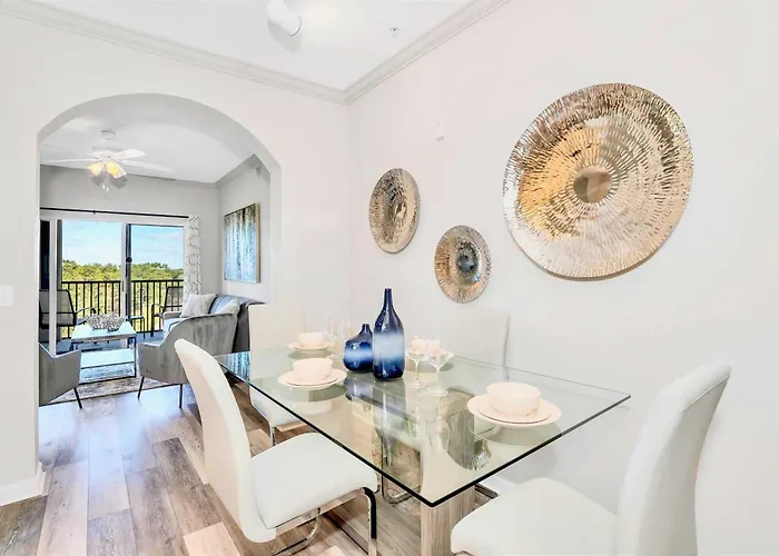 Upstay Pet-Friendly Condo With Pool Orlando villa entices active guests with access to a fitness studio and is located within a 6-km distance of the Avatar Flight of Passage. Featuring a patio, the Orlando holiday home is situated approximately a 10-minute ride from the Emerald Island Boulevard.